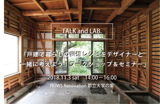 11/3(土) HOWS Renovation TALK and LAB. 第2回「戸建て暮らしのわくわく妄想レシピをデザイナーと一緒に考えよう!」